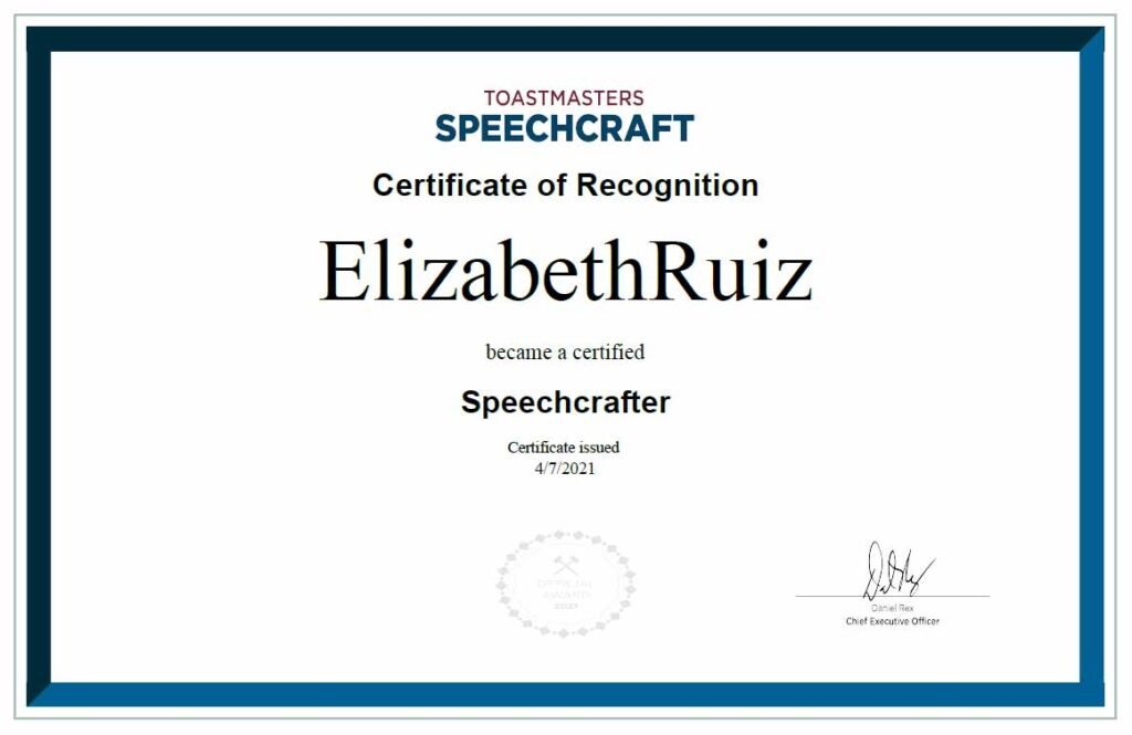 District 56 member, Elizabeth Ruiz, DTM, successfully coordinated and completed the first two digital Speechcraft programs. The first club she successfully coordinated a Speechcraft program is VNS Voices Toastmasters Club where she is President. A few weeks later, Elizabeth went on to successfully coordinate a second digital Speechcraft program with League City Toastmasters where she […]